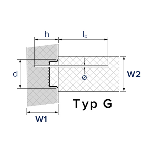 • Erläuterung Typenbezeichnung: z.Bsp.: G-00-10/15-h50-lb50 (Typenbezeichnung - Bügelbreite b - Stahl Ø / Teilung e - Bügelhöhe h - Verankerungslänge lb)